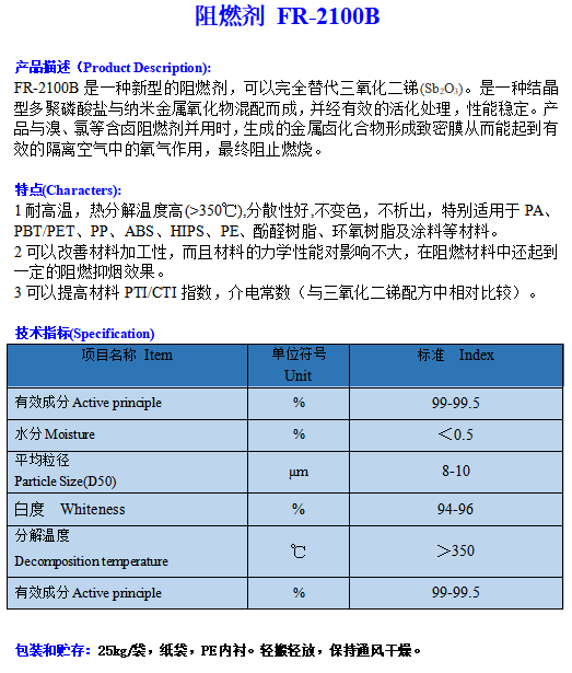 阻燃劑 FR-2100B 2022-5-10 本文被閱讀 3671 次